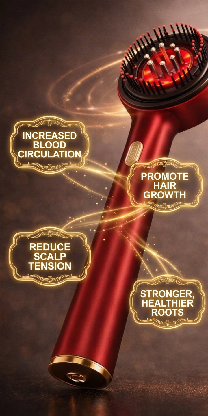 Experience the power of advanced scalp care with this red light therapy brush. Designed to gently stimulate the scalp, it helps encourage healthy circulation around the hair follicles—supporting stronger, fuller-looking hair over time. The soft massage nodes provide a relaxing brushing experience while helping distribute natural oils for smoother, shinier hair. With waterproof design and easy daily use, it transforms your regular hair routine into a soothing scalp therapy treatment.